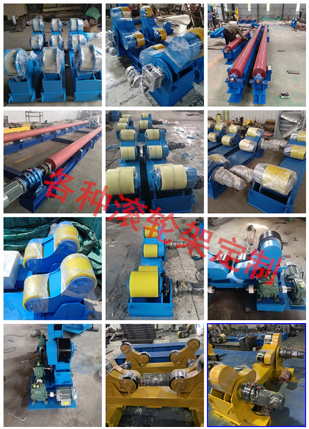 滾輪架由一臺主動架和兩臺從動架組成為一套,不需制作安裝基礎(chǔ)。主、從動架采用型鋼鋼板結(jié)構(gòu)支架,承重軸等主要零配件均采用鋼材制造,在加工成活前均經(jīng)過調(diào)質(zhì)處理,鋼性強,綜合性能好,承重量大。主、從動架各有四只滾輪,主動架上四只滾輪均為同步主動輪。滾輪安裝在側(cè)板組件內(nèi)。滾輪采用整體式滾輪的結(jié)構(gòu)。輪子表面掛膠采用橡膠,具有較高的承載能力和耐磨性能,不宜老化,不宜脫膠,可較長時間使用不用更換滾輪,減少維修費用和維修時間,具有較好的使用性能。自調(diào)芯滾輪架擺臂自適應(yīng)不同直徑工件要求。 浙江焊接滾輪架承載5噸10噸滾輪支架廠家哪里能買到