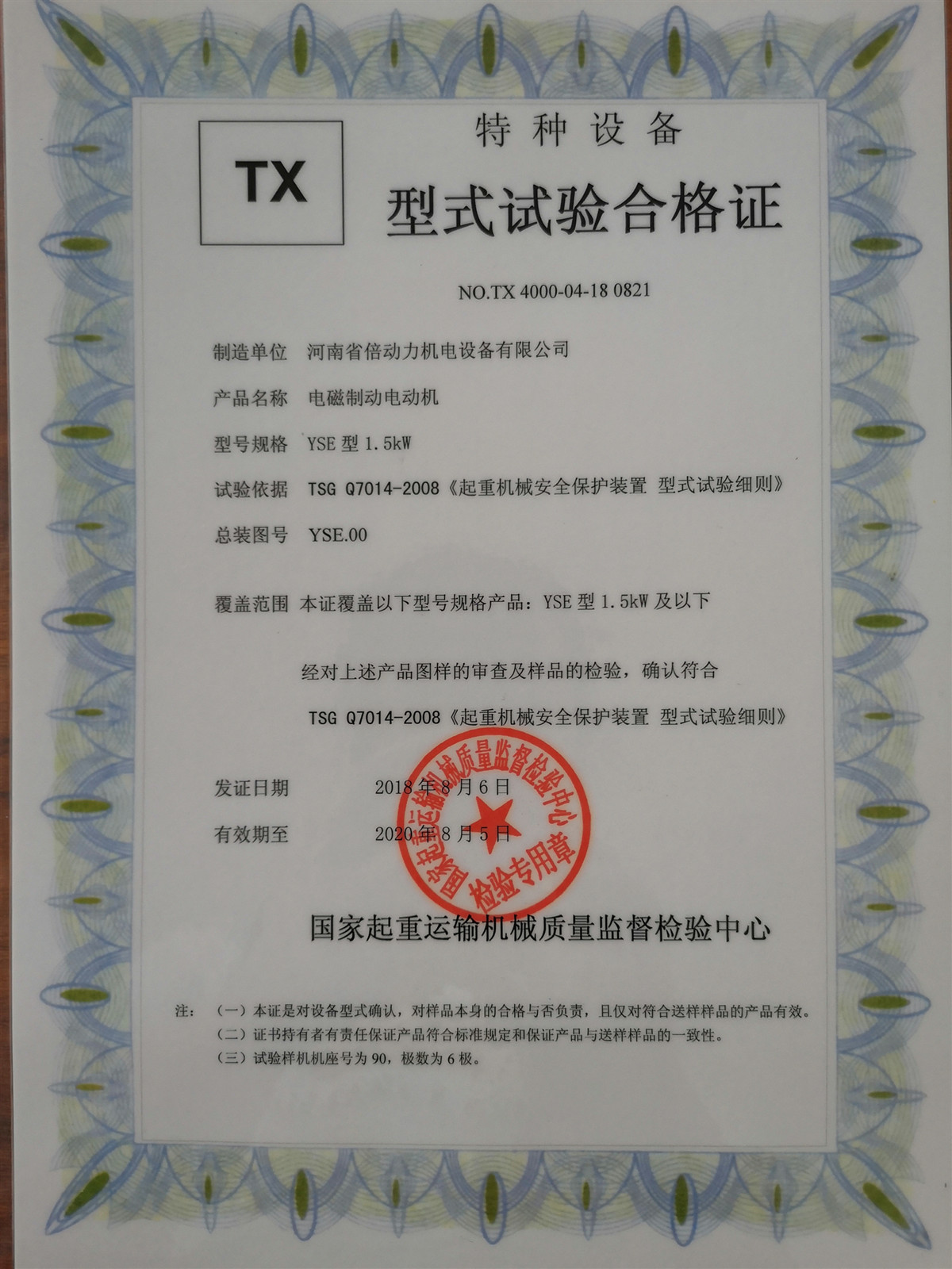 證書介紹 本證覆蓋以下型號(hào)規(guī)格產(chǎn)品:YSE型1.5KW及以下