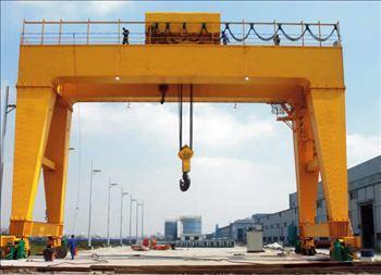 門式起重機(又稱龍門起重機)是橋架通過兩側支腿支撐在地面軌道上的橋架型起重機。在結構上由門架、大車運行機構、起重小車和電氣部分等組成。有的門式起重機只在一側有支腿,另一側支撐在廠房或棧橋上運行,稱作半門式起重機。門式起重機的門架上部橋架(含主梁和端梁)、支腿、下橫梁等部分構成。為了擴大起重機作業(yè)范圍,主梁可以向一側或兩側伸出支腿以外,形成懸臂。也可采用帶臂架的起重小車,通過臂架的俯仰和旋轉擴大起重機作業(yè)范圍