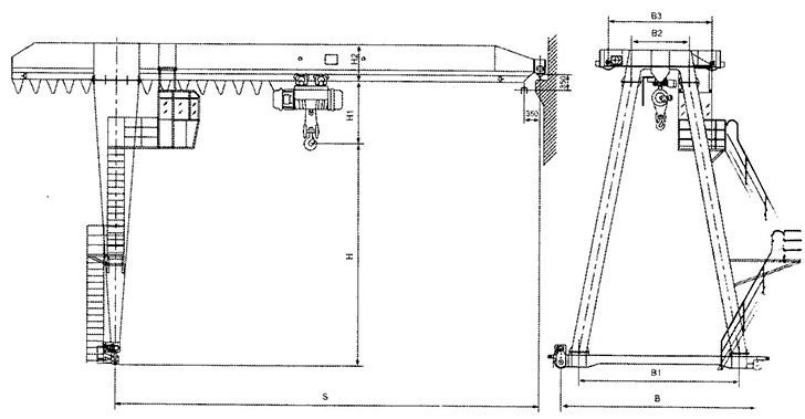 電動葫蘆半門式起重機(jī)結(jié)構(gòu)簡圖: