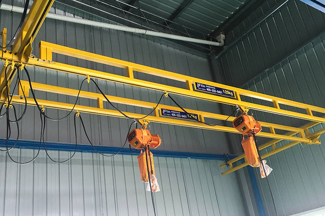 為了不影響操作,當(dāng)一個工作區(qū)域不允許有任何支撐結(jié)構(gòu)時,柔性輕型組合梁式懸掛起重機是一個**的選擇。這套起重機系統(tǒng)需要一個能承受足夠強度、安全支撐起重機負(fù)載的屋頂結(jié)構(gòu)??蛻艨梢栽谝惶坠潭ㄐ蛙壣习惭b多個主梁,大大地提升了生產(chǎn)效率。 此類產(chǎn)品為鋼質(zhì)結(jié)構(gòu),起重量為75-2000kg,主梁總長度可以達(dá)到10m。相對于傳統(tǒng)的梁式起重機,封閉型軌的設(shè)計搬運所使用的力僅為其三分之一。桁架式鋼軌的設(shè)計使跨度更大,安裝布局有更多的靈活性。