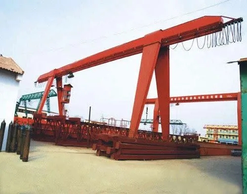 它的金屬結(jié)構(gòu)像門形框架,承載主梁下安裝兩條支腳,可以直接在地面的軌道上行走,主梁兩端可以具有外伸懸臂梁。