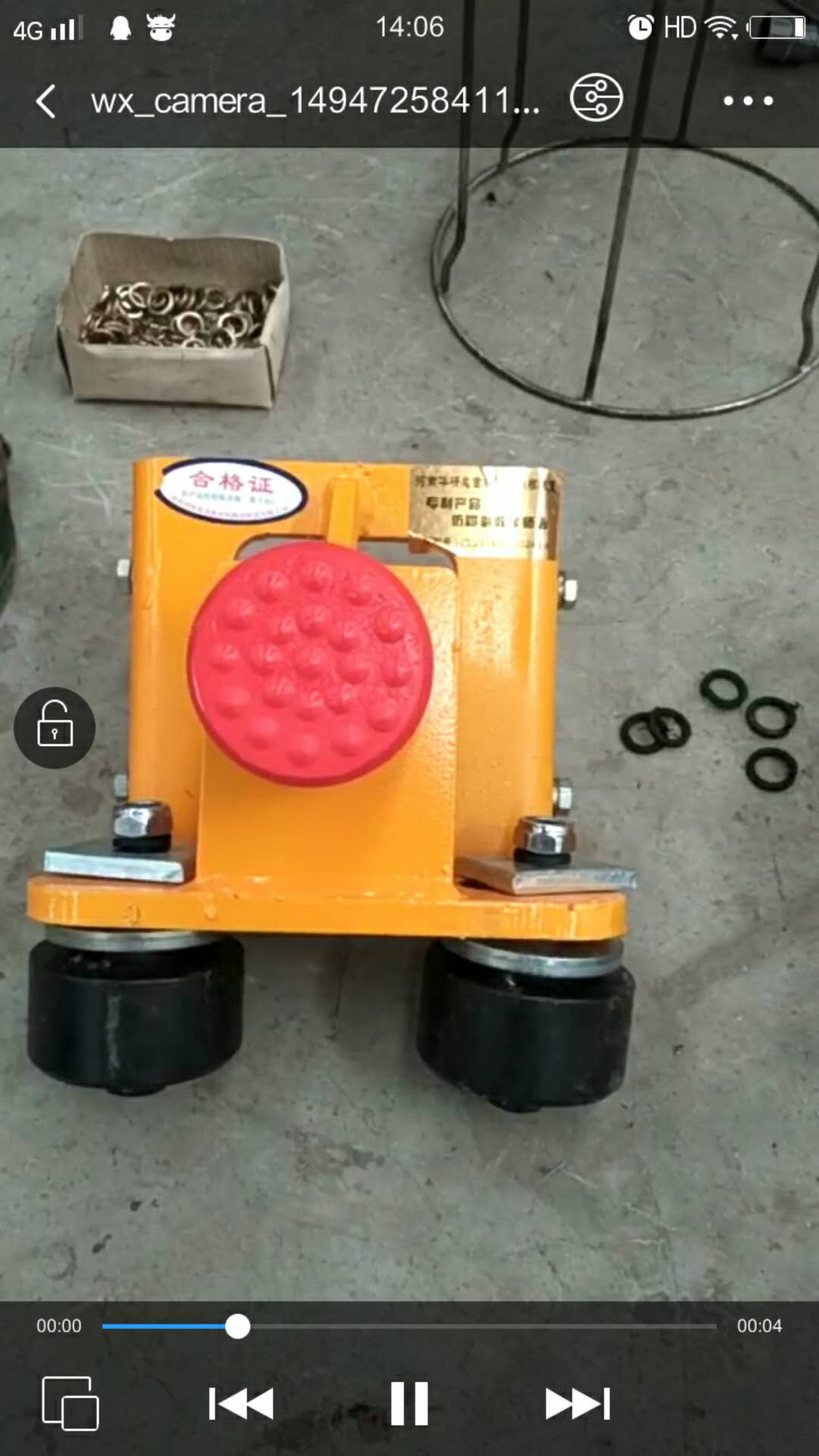 本裝置適用于單梁,雙梁起重機(jī)大車運(yùn)行機(jī)構(gòu)及雙梁小車運(yùn)行機(jī)構(gòu),適用車輪分別為L(zhǎng)D輪結(jié)構(gòu)和角形軸承箱車輪結(jié)構(gòu)。本裝置加裝在運(yùn)行端梁前端,依靠運(yùn)行軌道兩側(cè)的水平輪,限制起重機(jī)大車輪沿啃軌傾向,在大車車輪摩擦軌道之前,先行以滾動(dòng)方式與軌道接觸,來抵消大車運(yùn)行部分水平側(cè)向力,防止啃軌;同時(shí)兩只水平輪安裝位置低于軌道平面及車輪輪沿,這也相當(dāng)于最大限度地加高了車輪輪沿的高度。防止因?yàn)樵囕嗇喲靥珳\而造成的起重機(jī)脫軌事故。
