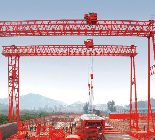門(mén)式起重機(jī)(又稱(chēng)龍門(mén)起重機(jī))是橋架通過(guò)兩側(cè)支腿支撐在地面軌道上的橋架型起重機(jī)。在結(jié)構(gòu)上由門(mén)架、大車(chē)運(yùn)行機(jī)構(gòu)、起重小車(chē)和電氣部分等組成。有的門(mén)式起重機(jī)只在一側(cè)有支腿,另一側(cè)支撐在廠房或棧橋上運(yùn)行,稱(chēng)作半門(mén)式起重機(jī)。門(mén)式起重機(jī)的門(mén)架上部橋架(含主梁和端梁)、支腿、下橫梁等部分構(gòu)成。為了擴(kuò)大起重機(jī)作業(yè)范圍,主梁可以向一側(cè)或兩側(cè)伸出支腿以外,形成懸臂。也可采用帶臂架的起重小車(chē),通過(guò)臂架的俯仰和旋轉(zhuǎn)擴(kuò)大起重機(jī)作業(yè)范圍。 [1]