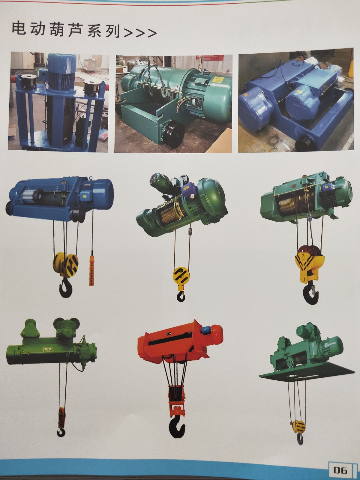 本公司產(chǎn)品品種齊全,質(zhì)量可靠,價格合理,售后服務(wù)周到。還可根據(jù)用戶要求,設(shè)計各種非標(biāo)電動葫蘆和非標(biāo)起重機。愿本公司的產(chǎn)品,成為貴單位理想的選擇。
