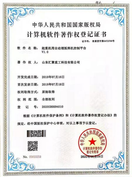 榮譽(yù)資質(zhì) 起重機(jī)用自動埋弧焊機(jī)控制平臺 V1.0