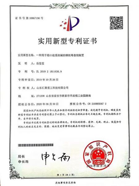 榮譽(yù)資質(zhì) 一種用于港口起重機(jī)械的鋼絲繩卷燒裝置
