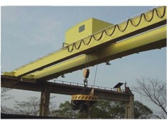 橋式起重機(jī)是橫架于車(chē)間、倉(cāng)庫(kù)和料場(chǎng)上空進(jìn)行物料吊運(yùn)的起重設(shè)備。由于它的兩端坐落在高大的水泥柱或者金屬支架上,形狀似橋。橋式起重機(jī)的橋架沿鋪設(shè)在兩側(cè)高架上的軌道縱向運(yùn)行,可以充分利用橋架下面的空間吊運(yùn)物料,不受地面設(shè)備的阻礙。它是使用范圍**廣、數(shù)量**多的一種起重機(jī)