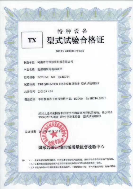 | 發(fā)證機(jī)構(gòu): | 國(guó)家起重運(yùn)輸機(jī)械質(zhì)量監(jiān)督檢驗(yàn)中心 | 發(fā)證時(shí)間 : | 2019-04-30 |