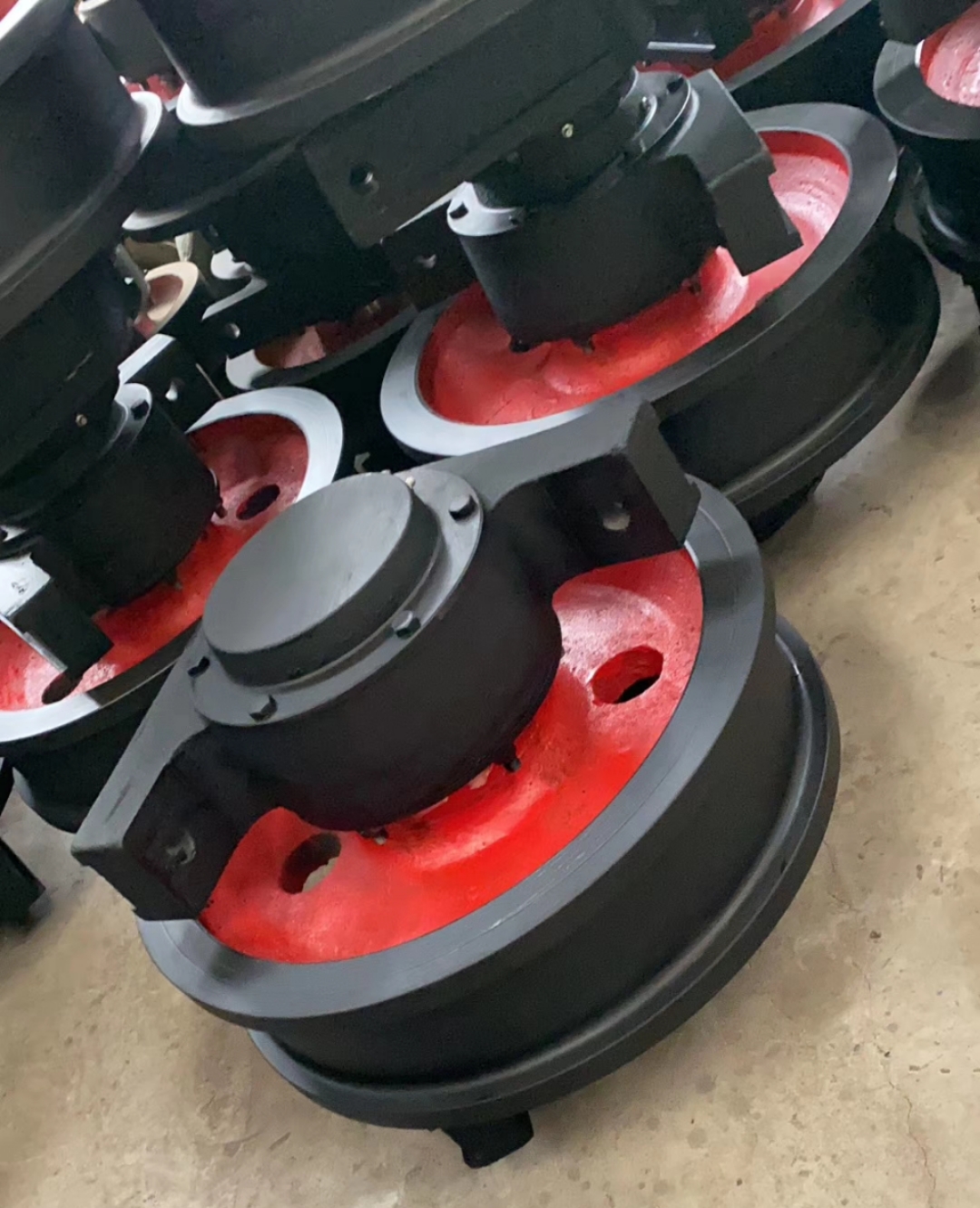 起重機(jī)車輪組:起重機(jī)運(yùn)行機(jī)構(gòu)車輪的水平偏斜值是起重機(jī)重要的技術(shù)參數(shù),偏斜值超差會(huì)造成啃軌,增大運(yùn)行阻力,產(chǎn)生振動(dòng)和噪音,加劇軌道和車輪磨損,大大降低起重機(jī)使用壽命,所以各類起重機(jī)制造技術(shù)條件都要對車輪水平偏斜規(guī)定允許的數(shù)值。
