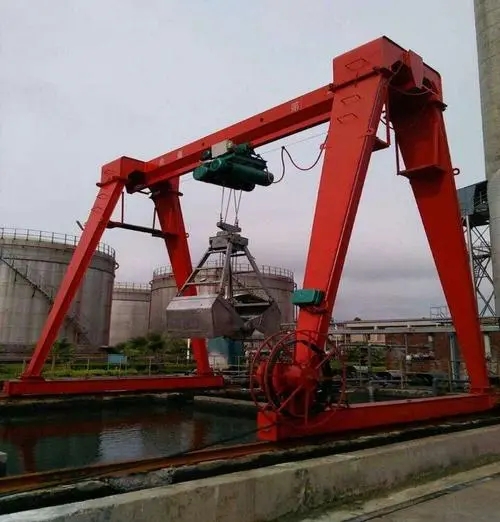 門式抓斗起重機(jī)主要是與橋式起重機(jī)、港機(jī)、鉸車上配套使用,廣泛應(yīng)用于港口、電廠、碼頭、化工等,抓取各類松散的堆積物,如:礦石、煤、爐渣等進(jìn)行裝車、卸車、輕堆、加料等作業(yè)。門式抓斗起重機(jī)將煤、礦石和磷酸鹽之類的散貨從貨艙里卸到漏斗里,然后經(jīng)傳送帶卸至堆貨場(chǎng)或裝車貨臺(tái)。起重設(shè)備抓斗橋式起重機(jī)為散料和顆粒狀物料專用