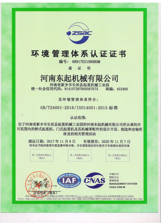 環(huán)境管理體系認(rèn)證證書