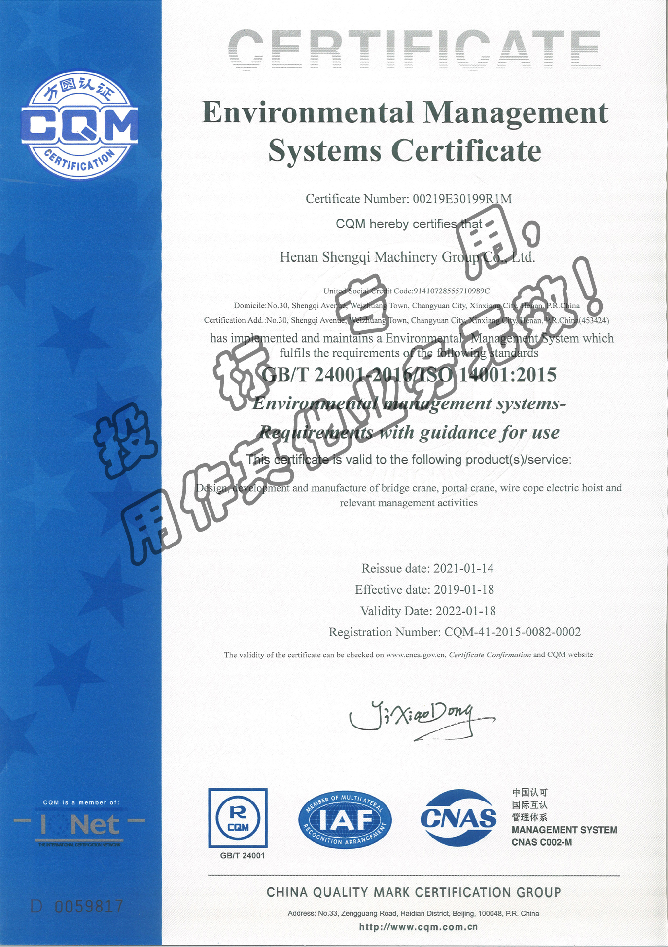 您當(dāng)前的位置:首頁 » 榮譽(yù)資質(zhì) » 環(huán)境管理體系認(rèn)證證書