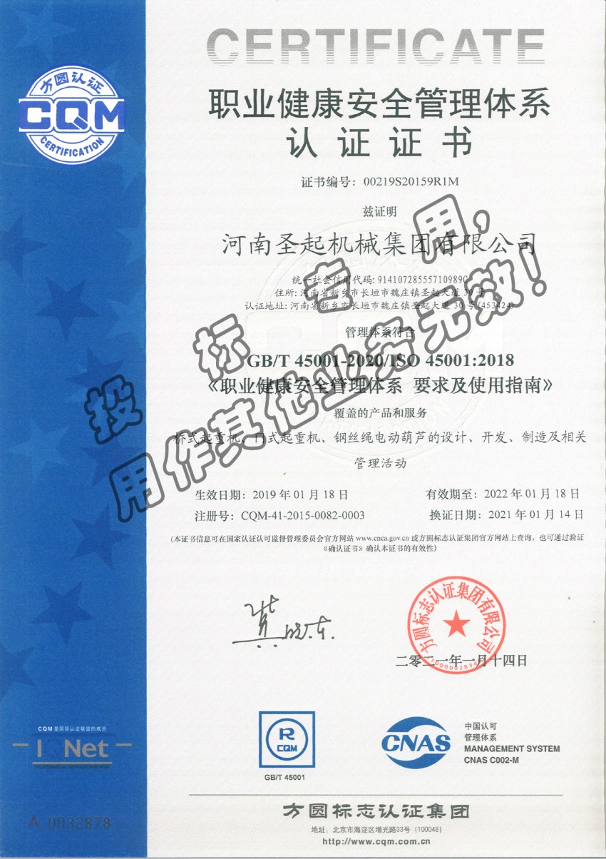 職業(yè)健康安全管理體系認證證書