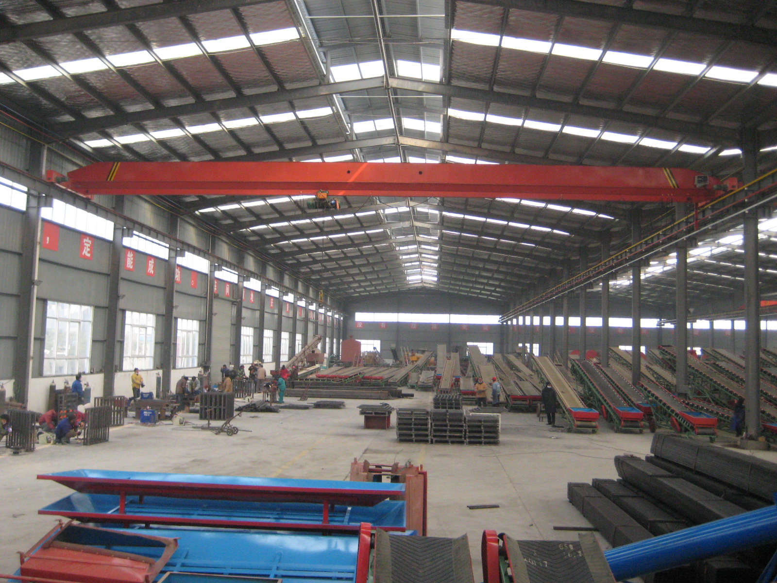 橋式起重機是橫架于車間、倉庫和料場上空進行物料吊運的起重設(shè)備。由于它的兩端坐落在高大的水泥柱或者金屬支架上,形狀似橋。橋式起重機的橋架沿鋪設(shè)在兩側(cè)高架上的軌道縱向運行,可以充分利用橋架下面的空間吊運物料,不受地面設(shè)備的阻礙。它是使用范圍**廣、數(shù)量**多的一種起重機械