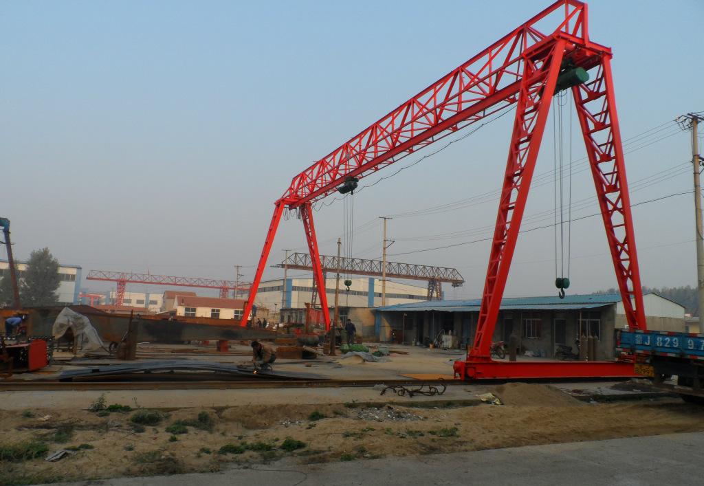 門式起重機(jī)(又稱龍門起重機(jī))是橋架通過兩側(cè)支腿支撐在地面軌道上的橋架型起重機(jī)。在結(jié)構(gòu)上由門架、大車運(yùn)行機(jī)構(gòu)、起重小車和電氣部分等組成。有的門式起重機(jī)只在一側(cè)有支腿,另一側(cè)支撐在廠房或棧橋上運(yùn)行,稱作半門式起重機(jī)。門式起重機(jī)的門架上部橋架(含主梁和端梁)、支腿、下橫梁等部分構(gòu)成。為了擴(kuò)大起重機(jī)作業(yè)范圍,主梁可以向一側(cè)或兩側(cè)伸出支腿以外,形成懸臂。也可采用帶臂架的起重小車,通過臂架的俯仰和旋轉(zhuǎn)擴(kuò)大起重機(jī)作業(yè)范圍