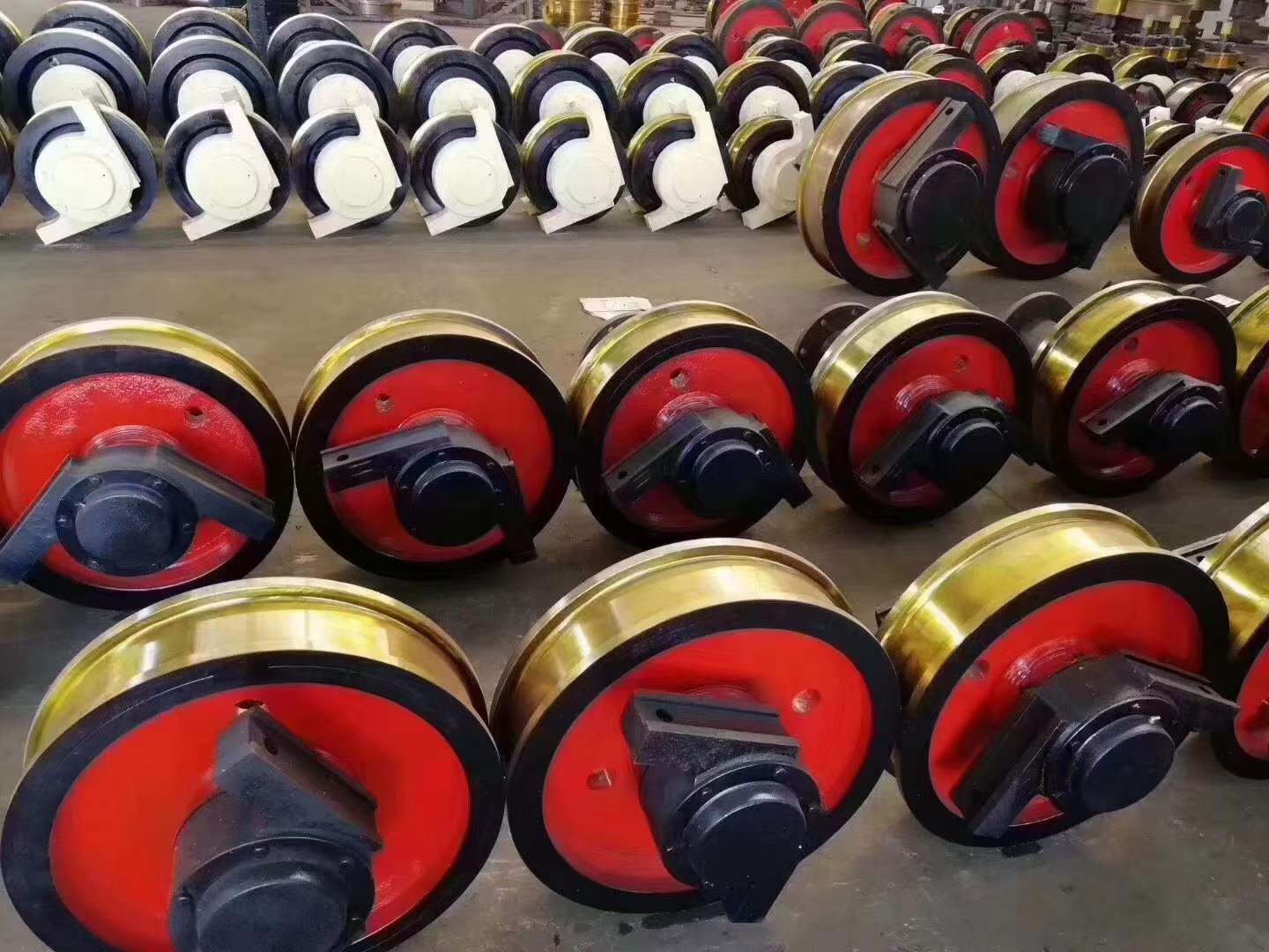行車輪主要用于單梁起重機(jī)及小噸位的葫蘆雙梁起重機(jī),主要規(guī)格有兩種:直徑三百和四百,LD車輪行走機(jī)構(gòu)主要由車輪軸車輪片軸承齒圈四部分組成,車輪軸材質(zhì)為45號鋼,經(jīng)調(diào)制處理硬度達(dá)到HB217-HB255,內(nèi)有黃油孔,便于潤滑,車輪片由45號鋼鍛造而成,目前高端的起重機(jī)都采用鍛件。