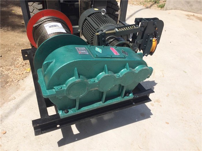 電動卷揚機繞繩索來完成牽引工作的裝置。可以垂直提升、水平或傾斜拽引重物。卷揚機分為手動卷揚機和電動卷揚機兩種。以電動卷揚機為主。電動卷揚機由電動機、聯(lián)軸節(jié)、制動器、齒輪箱和卷筒組成,共同安裝在機架上。對于起升高度和裝卸量大工作頻繁的情況,調(diào)速性能好,能令空鉤快速下降。對安裝就位或敏感的物料,能用較小速度。