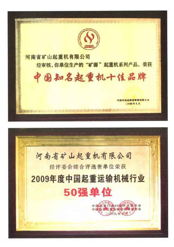 證書介紹 中國知名起重機(jī)十佳品牌