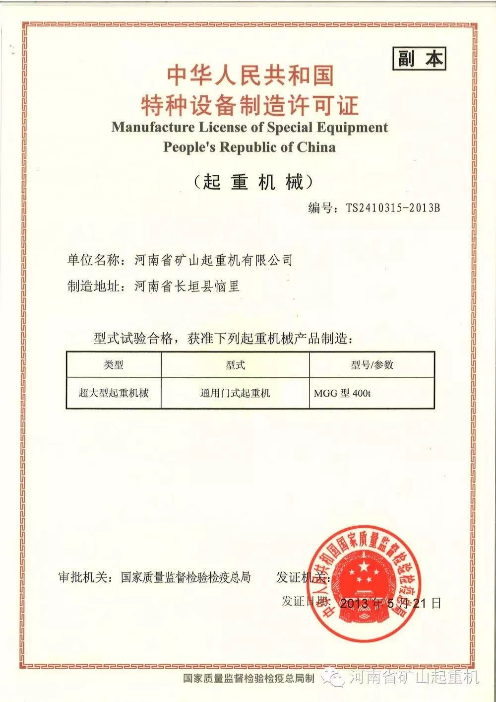 公司介紹 中華人民共和國特種設(shè)備制造許可證