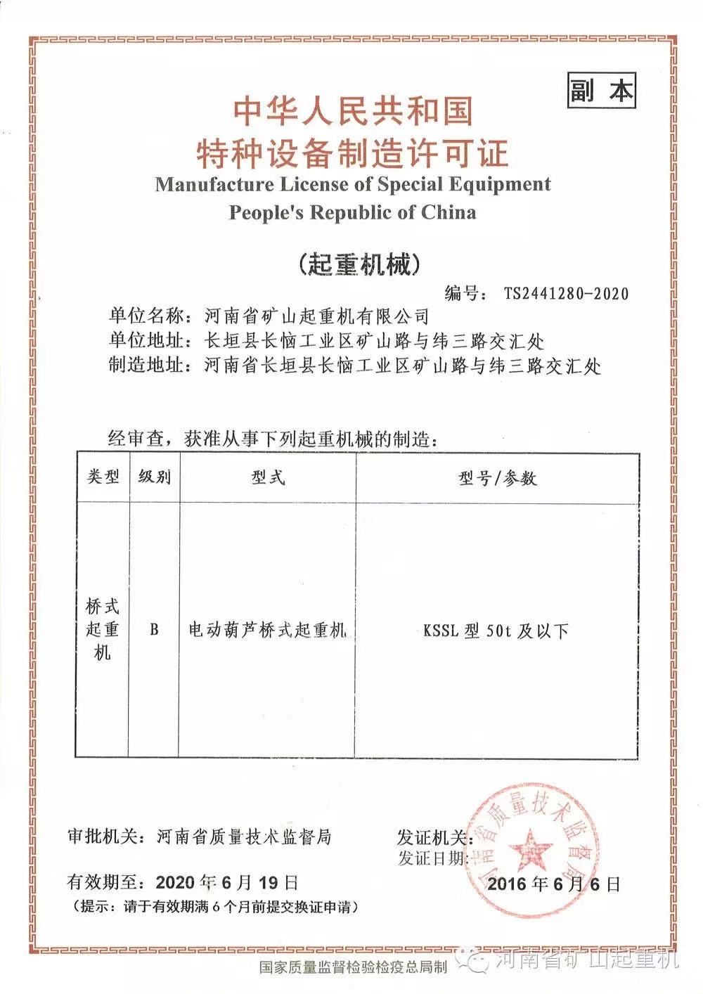 公司介紹 中華人民共和國特種設(shè)備制造許可證