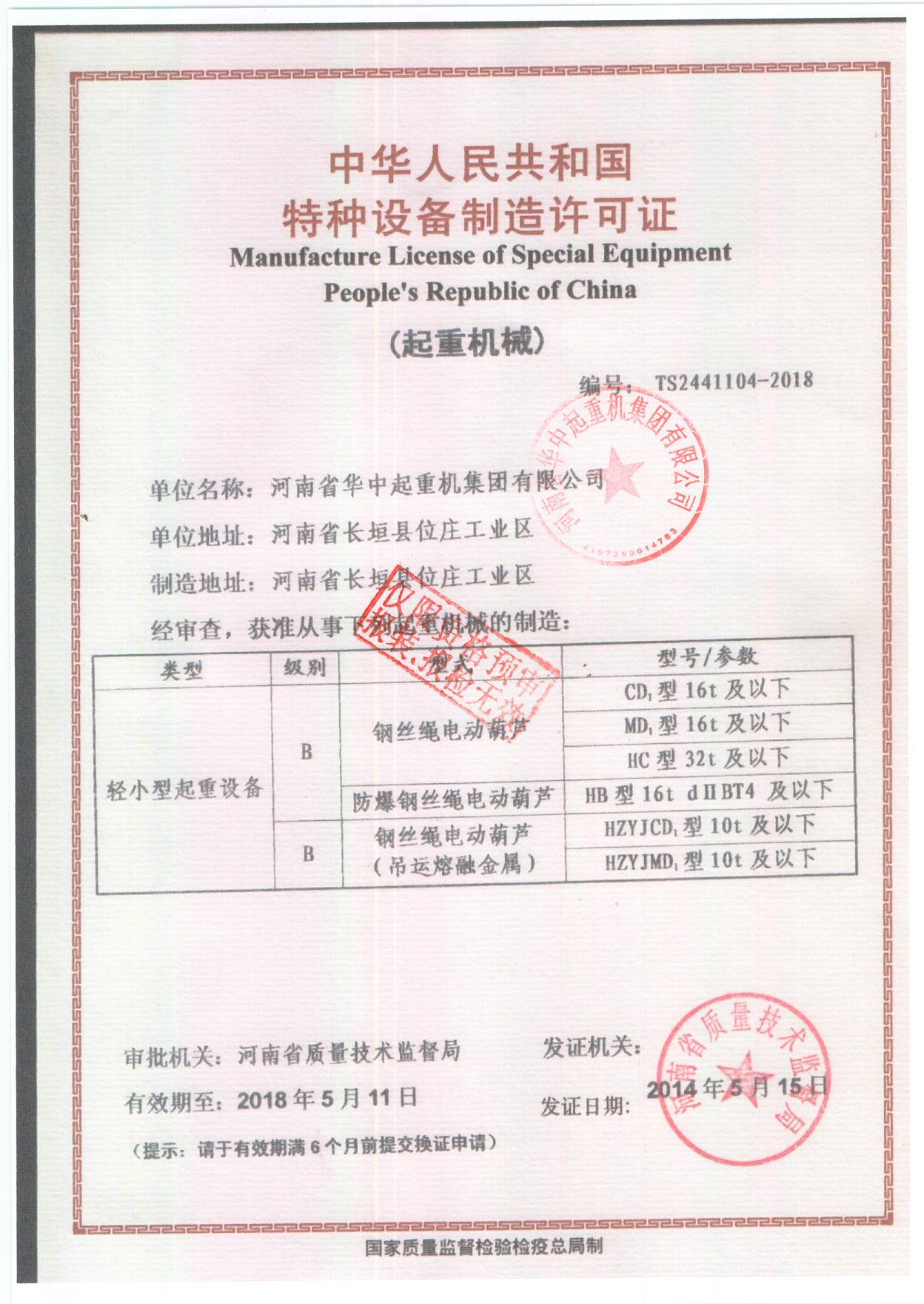 | 發(fā)證機(jī)構(gòu): | 質(zhì)量監(jiān)督局 | 發(fā)證時(shí)間 : | 2015-05-15 |
