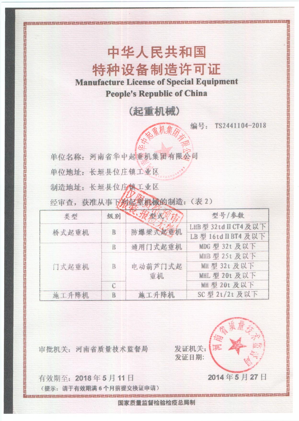您當(dāng)前的位置:首頁 » 榮譽(yù)資質(zhì) » 橋門式制造許可證