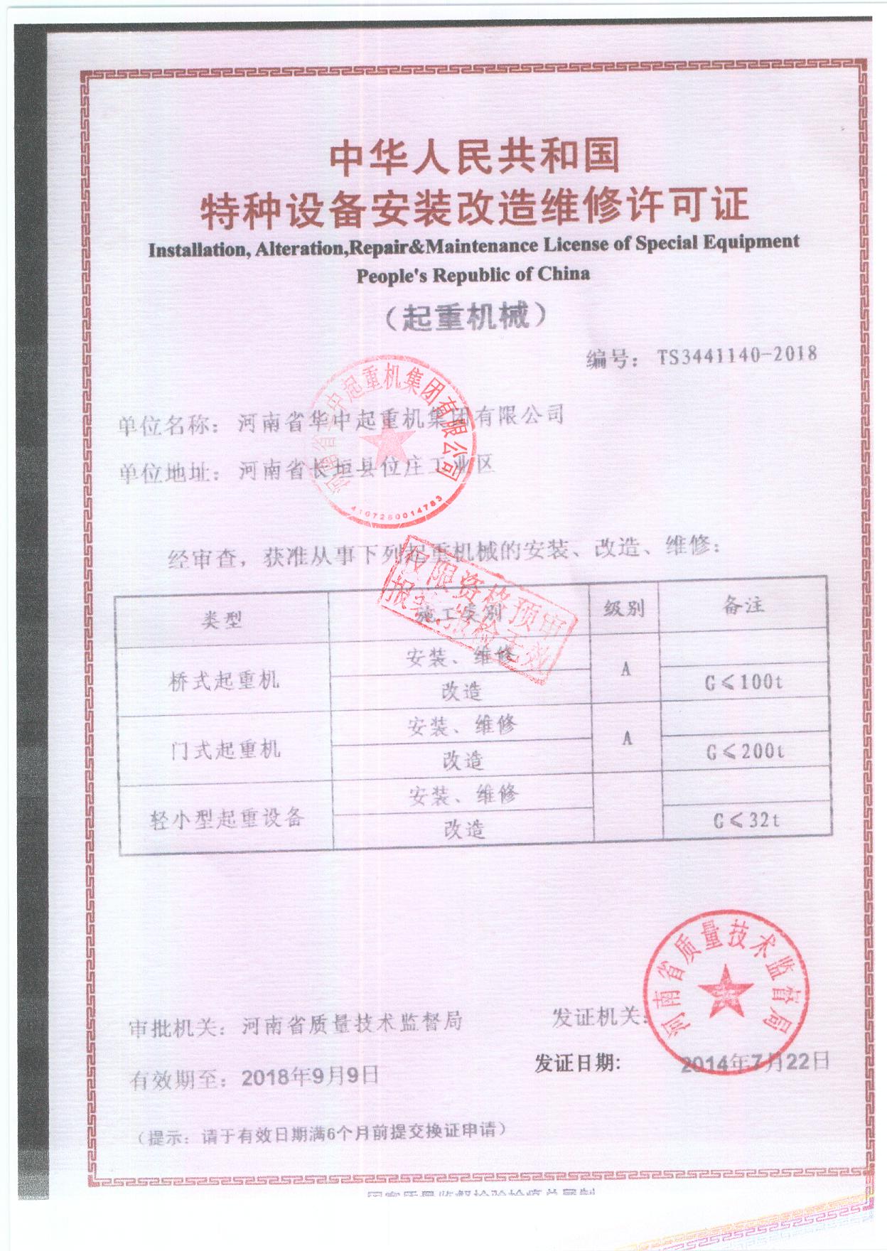 | 發(fā)證機(jī)構(gòu): | 河南質(zhì)量監(jiān)督局 | 發(fā)證時間 : | 2014-07-25 |
