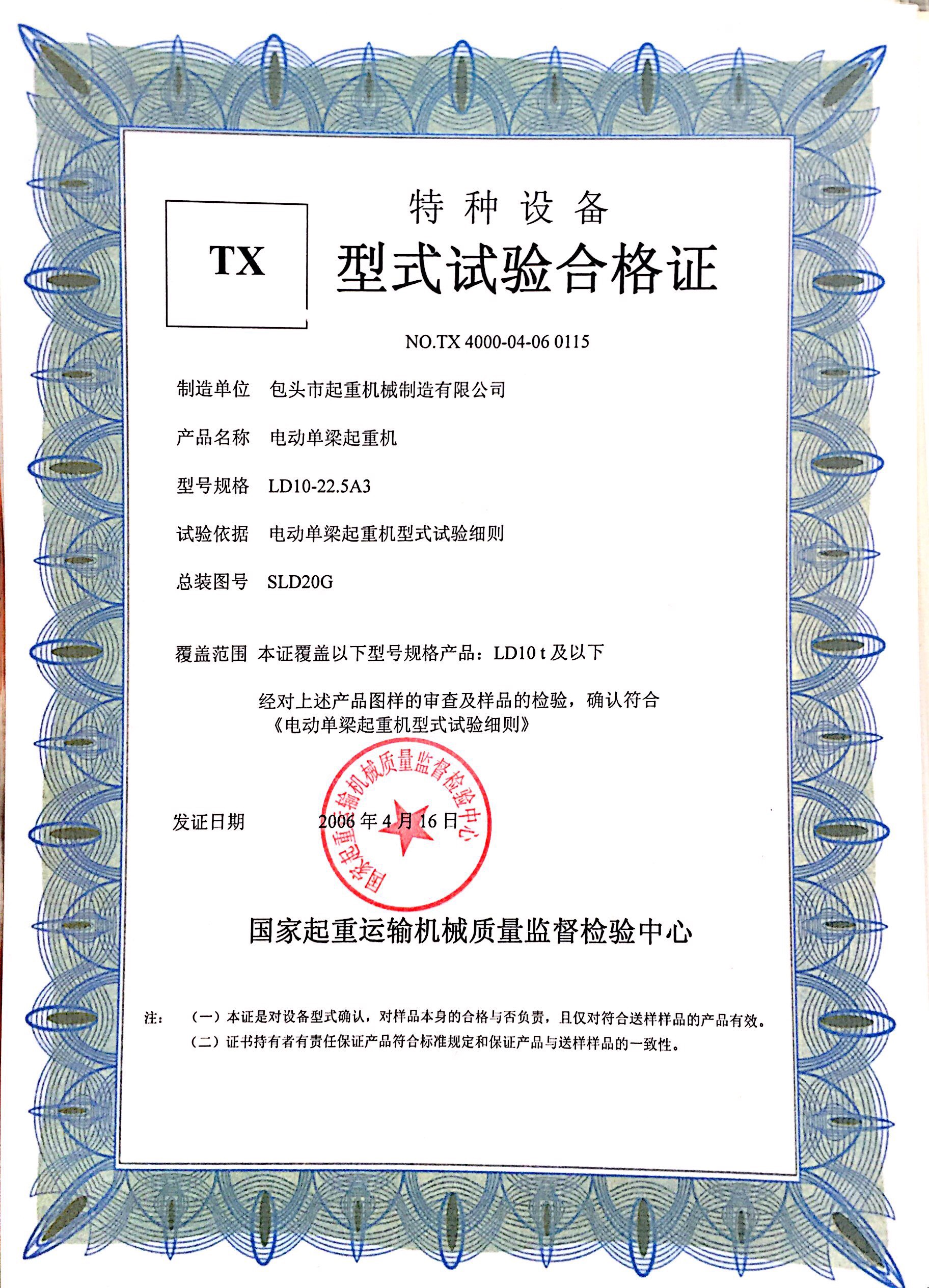 | 發(fā)證機(jī)構(gòu): | 國(guó)家起重運(yùn)輸機(jī)械質(zhì)量監(jiān)督檢驗(yàn)中心 | 發(fā)證時(shí)間 : | 2006-04-16 |