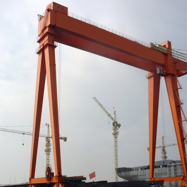 它的金屬結(jié)構(gòu)像門形框架,承載主梁下安裝兩條支腳,可以直接在地面的軌道上行走,主梁兩端可以具有外伸懸臂梁
