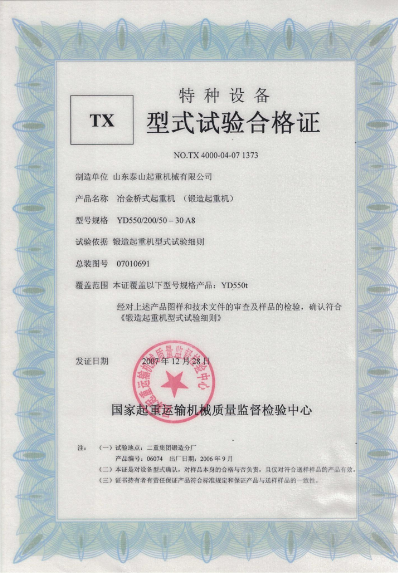 發(fā)證機(jī)構(gòu):   國(guó)家起重運(yùn)輸機(jī)械質(zhì)量監(jiān)督檢驗(yàn)中心 發(fā)證時(shí)間 :   2007-12-28