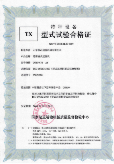 | 發(fā)證機(jī)構(gòu): | 國(guó)家起重運(yùn)輸機(jī)械質(zhì)量監(jiān)督檢驗(yàn)中心 | 發(fā)證時(shí)間 : | 2009-08-20 |