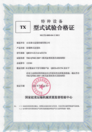 發(fā)證機(jī)構(gòu):   國家起重運(yùn)輸機(jī)械質(zhì)量監(jiān)督檢驗(yàn)中心 發(fā)證時(shí)間 :   2011-02-26