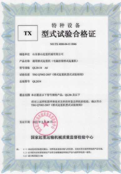 發(fā)證機(jī)構(gòu):   國家起重運(yùn)輸機(jī)械質(zhì)量監(jiān)督檢驗(yàn)中心 發(fā)證時(shí)間 :   2011-05-28