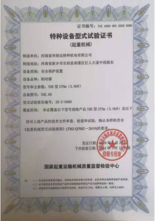 » 特種設備型式試驗證書