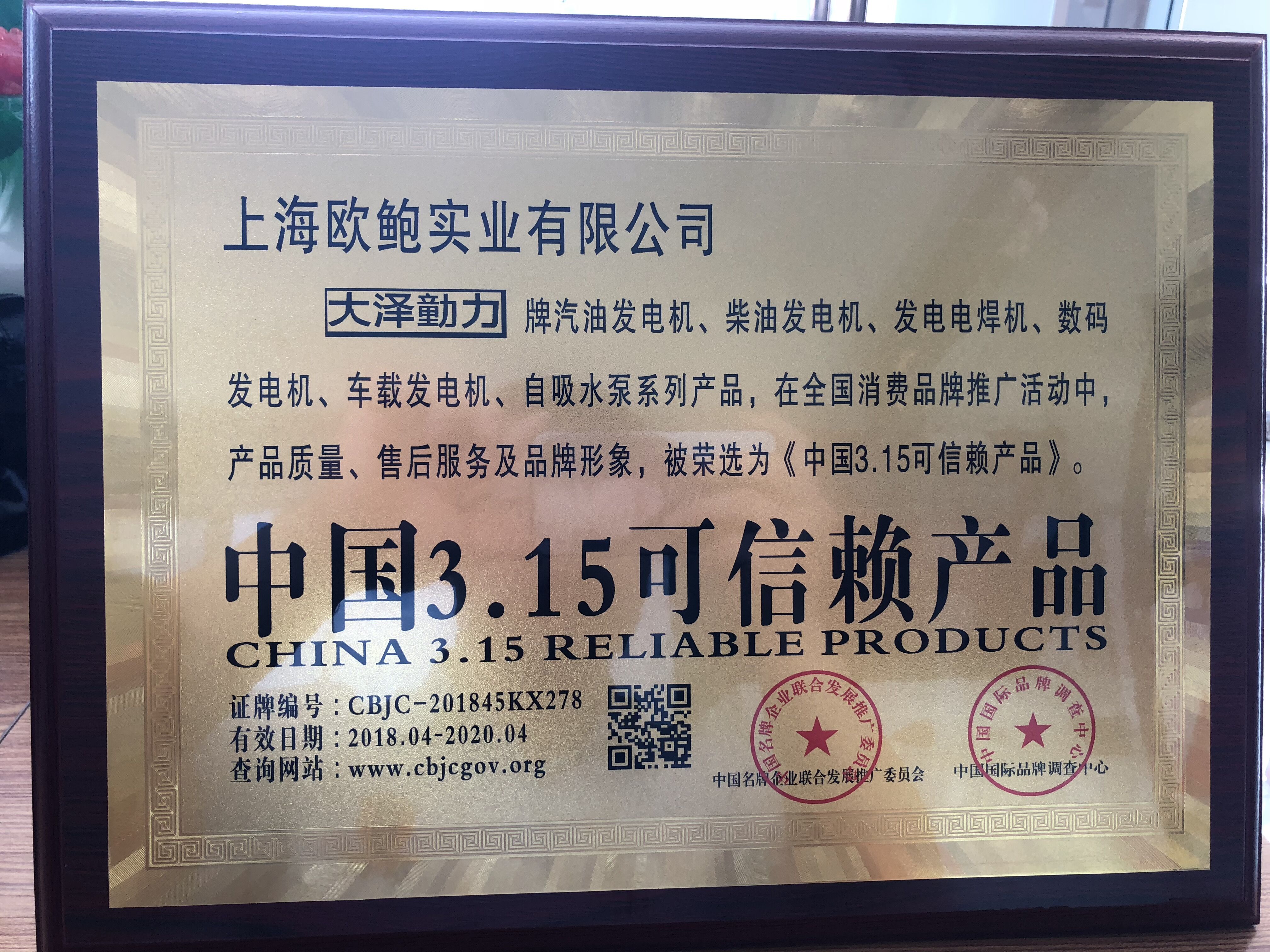 榮譽(yù)資質(zhì) 中國3.15可信賴產(chǎn)品
