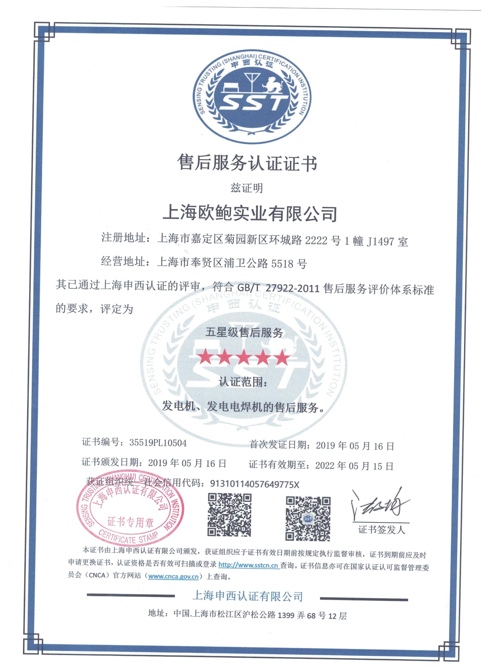 榮譽(yù)資質(zhì) 售后服務(wù)認(rèn)證證書(shū)