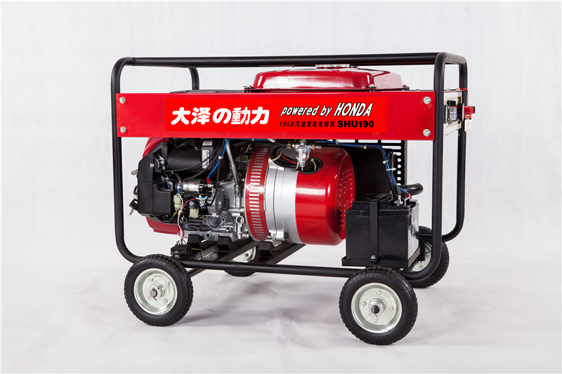 單相190A汽油發(fā)電電焊機 大澤發(fā)電電焊兩用機從而提高工作效率,便于使用。焊接優(yōu)良采用IGBT斬波,再加上脈寬調制和電抗器平波技術,使得焊接電壓波形更平穩(wěn)。焊接時電流不過零,電流波動小,焊縫質量高。然后輸出具有下降外特性的電源,輸出端在接通和斷開時會產(chǎn)生巨大的電壓變化,兩極在瞬間短路時引燃電弧,利用產(chǎn)生的電弧來熔化電焊條和焊材,冷卻后來達到使它們結合的目的。省油方面比較可觀,動力馬力大,可以長時間連續(xù)工作。一般適合移動方便且需要長時間使用發(fā)電焊機的用戶使用。發(fā)電電焊兩用機設備儀表齊全,配有省油電磁閥、高低檔電流選擇開關、機油報警器等裝置,重量輕,移動方便,特別適合于高、險、澤等環(huán)境下進行高質量焊接。