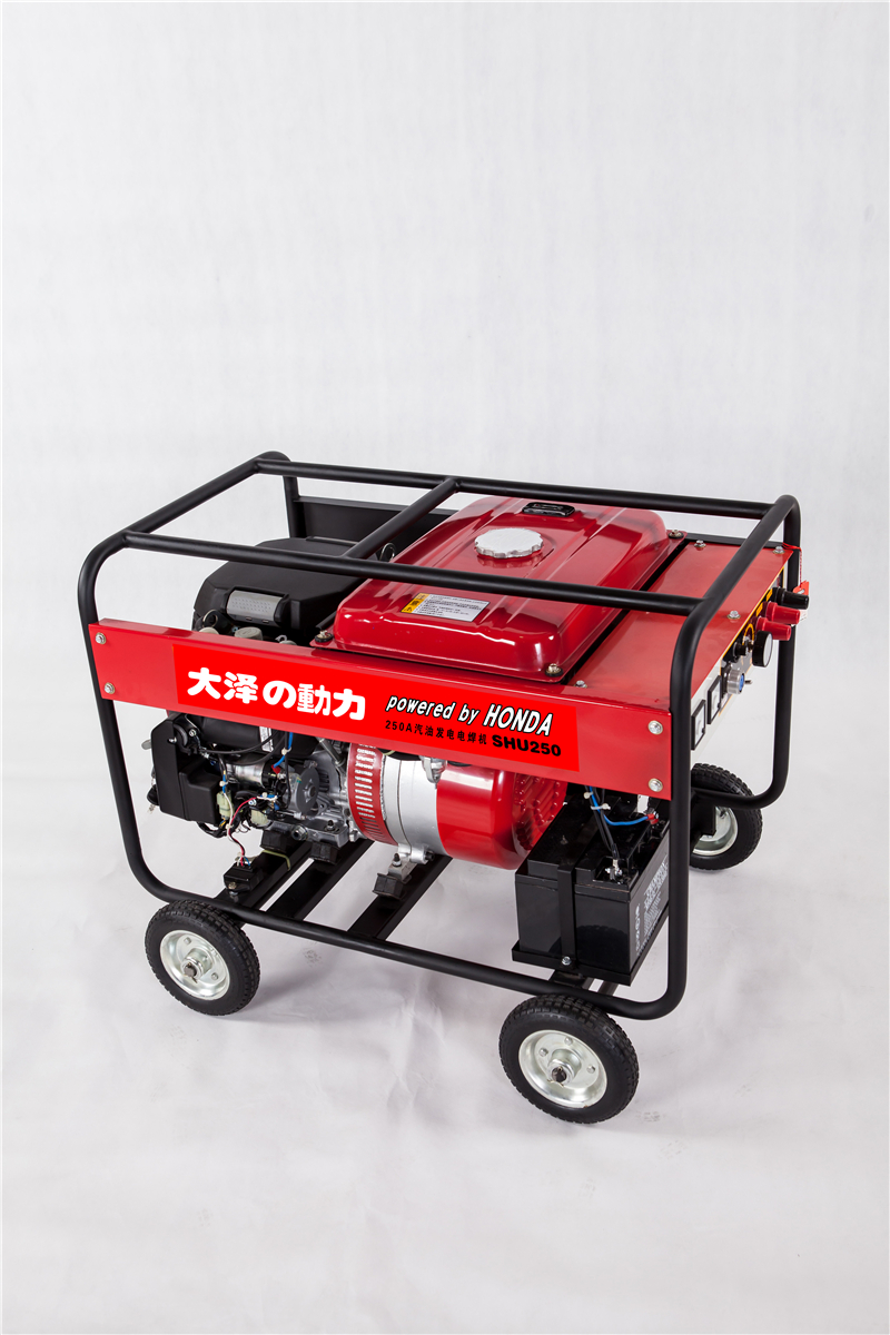 大澤汽油發(fā)電電焊一體機(jī),可以發(fā)電也可以電焊,真正的一機(jī)兩用,另外還有輔助電源,是一款非常適合于野外焊接使用的機(jī)器,可單獨(dú)提供同等容量的單、三相電源,實(shí)現(xiàn)一機(jī)兩用的功能,高效率電機(jī),電壓穩(wěn)定,運(yùn)行可靠,四沖程風(fēng)冷汽油發(fā)動(dòng)機(jī),油耗低,可靠性強(qiáng)大容量油箱,不缺油可長時(shí)間工作,重量輕,體積小,配有移動(dòng)輪,為戶外施工提供極大的便利。廣泛用于,供電、鐵路、市政,石油管道等戶外焊接及發(fā)電施工作業(yè)。
