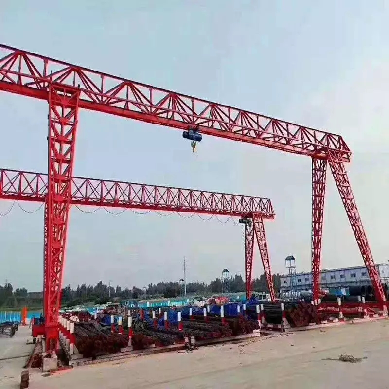 它的金屬結(jié)構(gòu)像門形框架,承載主梁下安裝兩條支腳,可以直接在地面的軌道上行走,主梁兩端可以具有外伸懸臂梁。