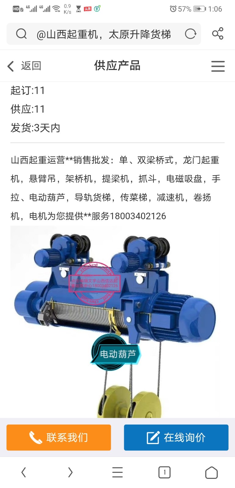 • 聯(lián)系我時(shí),請(qǐng)告知來(lái)自全球起重機(jī)械網(wǎng),將會(huì)給你95折優(yōu)惠,謝謝!