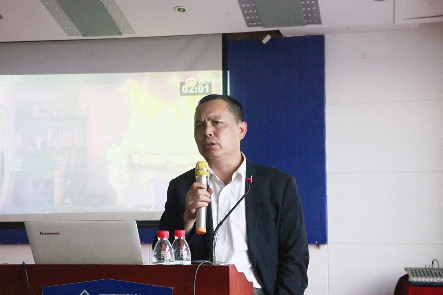 大家觀看了一段觸目驚心的火災(zāi)案例紀(jì)錄片后,呂俊杰教官就怎樣防范火災(zāi)的發(fā)生,火災(zāi)發(fā)生怎樣報(bào)警、怎樣逃生、怎樣使用消防器材,以及什么樣的起火源采用什么樣的消防器材做了一系列的講解。