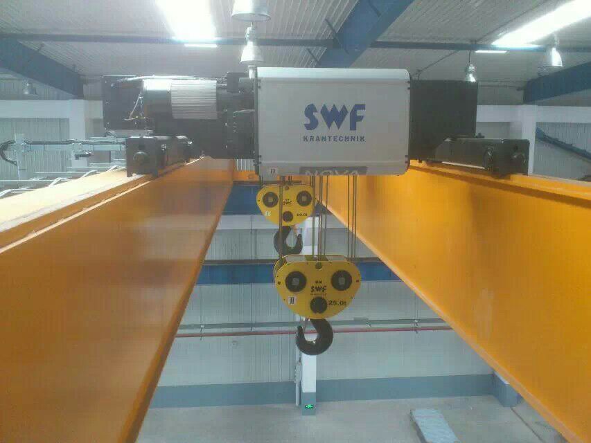 詳細(xì)信息 歐洲橋式起重機,具有自重輕,結(jié)構(gòu)小巧,能耗較低,在橋架上設(shè)置一臺小車及起升機構(gòu),小車可以前后運行,大車運行等機構(gòu),實現(xiàn)物料物體在立體空間搬運,歐式起重機采用獨特的設(shè)計理念,具有尺寸小,重量輕,輪壓小的特點。與傳統(tǒng)起重機相比,吊鉤至墻面的極限距離最小,凈空高度最低,天宇鴻圖起重機更能貼近前面作業(yè),起升高度更高,實際增加了現(xiàn)有廠房的有效工作空間。由于起重機具有重量輕,輪壓小的特點,新廠房空間可以設(shè)計的更小,功能更齊全。較小的廠房意味著初期建設(shè)投資,以及長期供熱、空調(diào)及其他維護費中可以節(jié)省一筆可觀的資金。