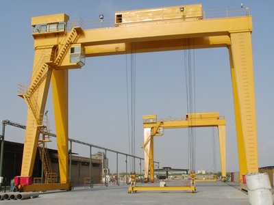 門(mén)式起重機(jī)是橋式起重機(jī)的一種變形,又叫龍門(mén)吊。主要用于室外的貨場(chǎng)、料場(chǎng)貨、散貨的裝卸作業(yè)。門(mén)式起重機(jī)具有場(chǎng)地利用率高、作業(yè)范圍大、適應(yīng)面廣、通用性強(qiáng)等特點(diǎn),在港口貨場(chǎng)得到廣泛使用。