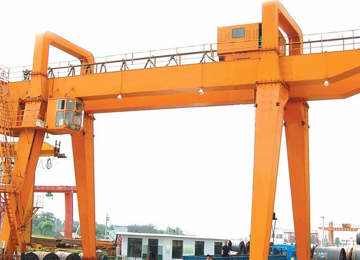 橋式起重機(jī),是一種類(lèi)型的起重機(jī)在工業(yè)環(huán)境中。高架起重機(jī)由平行的跑道組成,行進(jìn)橋橫跨該間隙。一個(gè)葫蘆,起重機(jī)的起重部件,沿著橋行駛。如果橋在地面上固定在固定導(dǎo)軌上的兩個(gè)或多個(gè)支腿上受到剛性支撐,則該起重機(jī)稱(chēng)為龍門(mén)起重機(jī)或巨人起重機(jī)。