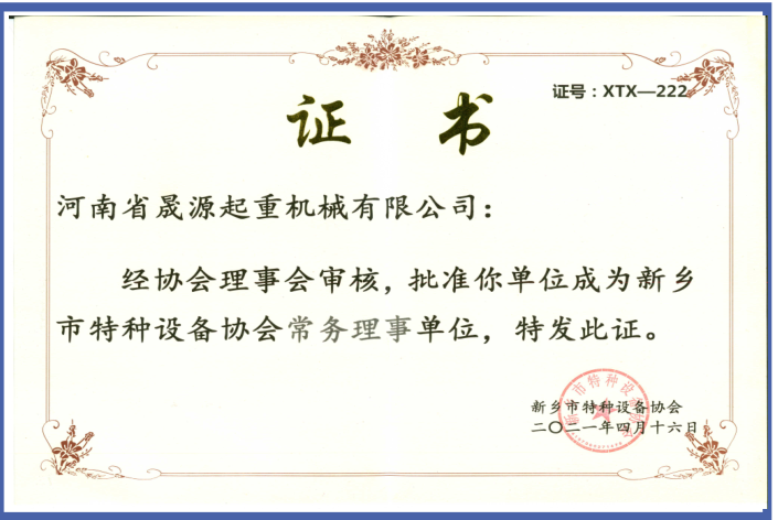 榮譽(yù)資質(zhì) 河南省晟源起重機(jī)械有限公司證書