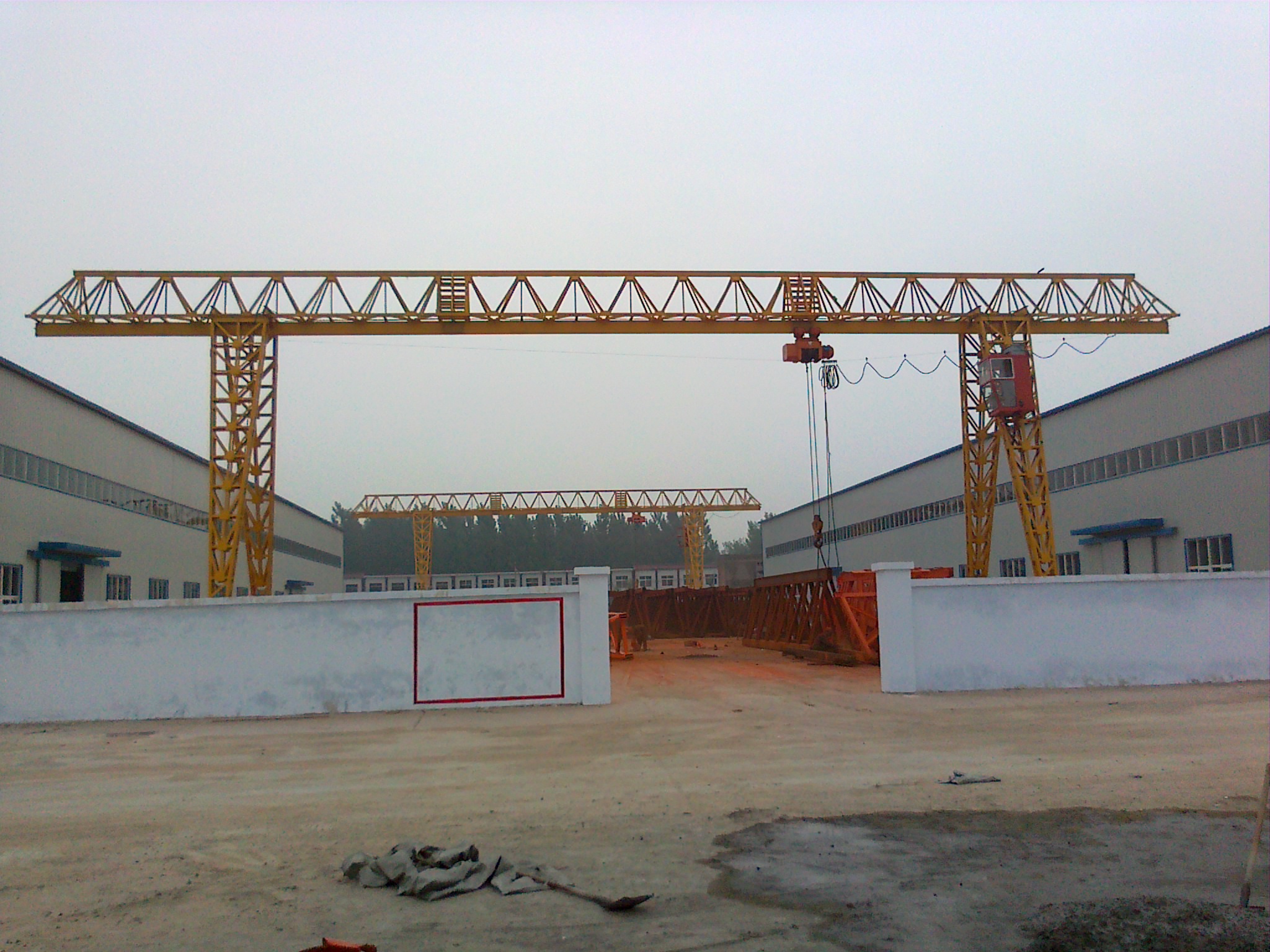 門式起重機又叫龍門吊,主要用于室外的貨場、料場貨、散貨的裝卸作業(yè)。它的金屬結構像門形框架,承載主梁下安裝兩條支腳,可以直接在地面的軌道上行走,主梁兩端可以具有外伸懸臂梁。門式起重機具有場地利用率高、作業(yè)范圍大、適應面廣、通用性強等特點,起重量范圍在3-16T之間做一般裝卸使用。