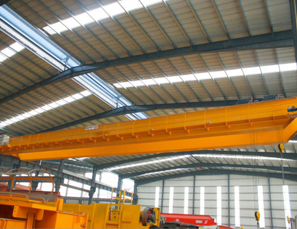 橋式起重機(jī)是一種橫架于車間、倉庫和料場(chǎng)上空進(jìn)行物料吊運(yùn)的起重設(shè)備。由于它的兩端坐落在高大的水泥柱或者金屬支架上,形狀似橋。橋式起重機(jī)的橋架沿鋪設(shè)在兩側(cè)高架上的軌道縱向運(yùn)行,可以充分利用空間,方便作業(yè)。 橋式起重機(jī)主要由機(jī)械、金屬結(jié)構(gòu)和電氣三大部分組成。