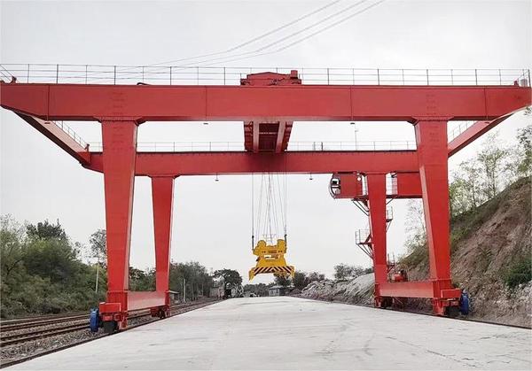 龍門吊是一種橋式起重機(jī),其金屬結(jié)構(gòu)像門形框架,承載主梁下安裝兩條支腳,可以直接在地面的軌道上行走,主梁兩端可以具有外伸懸臂梁。龍門吊具有場(chǎng)地利用率高、作業(yè)范圍大、適應(yīng)面廣、通用性強(qiáng)等特點(diǎn),在港口貨場(chǎng)得到廣泛使用。