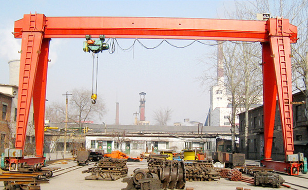龍門吊是一種橋式起重機(jī),其金屬結(jié)構(gòu)像門形框架,承載主梁下安裝兩條支腳,可以直接在地面的軌道上行走,主梁兩端可以具有外伸懸臂梁。龍門吊具有場(chǎng)地利用率高、作業(yè)范圍大、適應(yīng)面廣、通用性強(qiáng)等特點(diǎn),在港口貨場(chǎng)得到廣泛使用。
